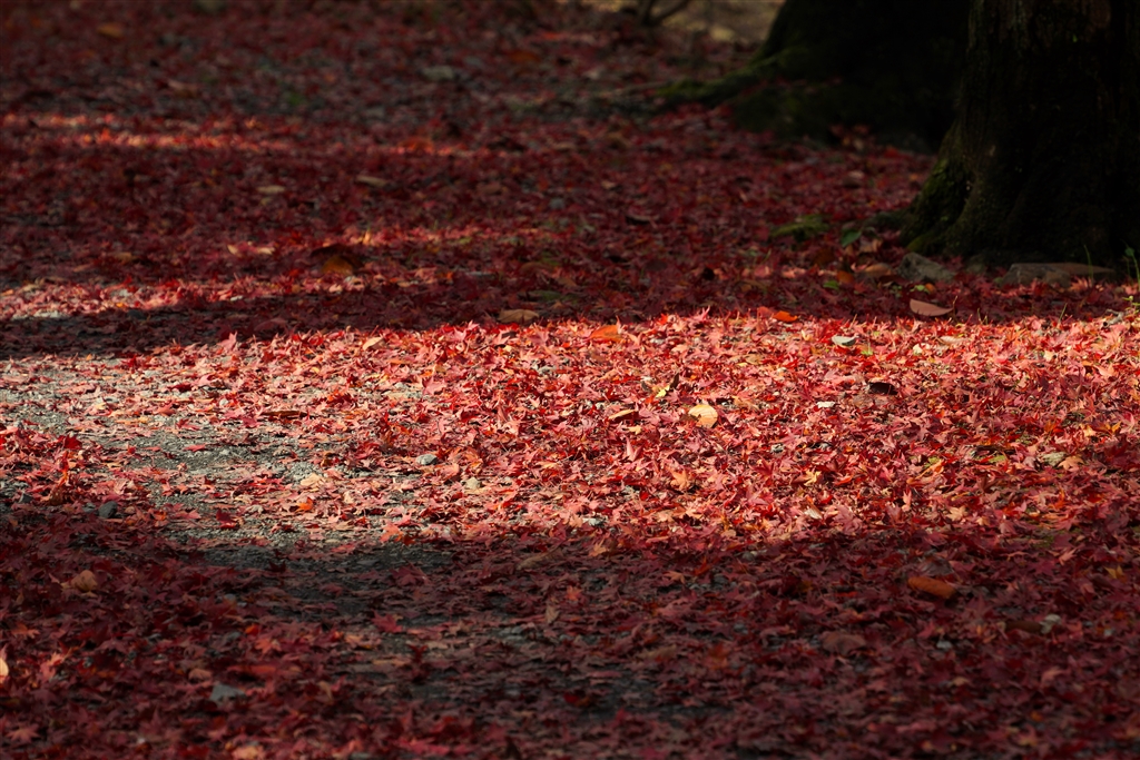 春は落花、秋はモミジのじゅうたんです