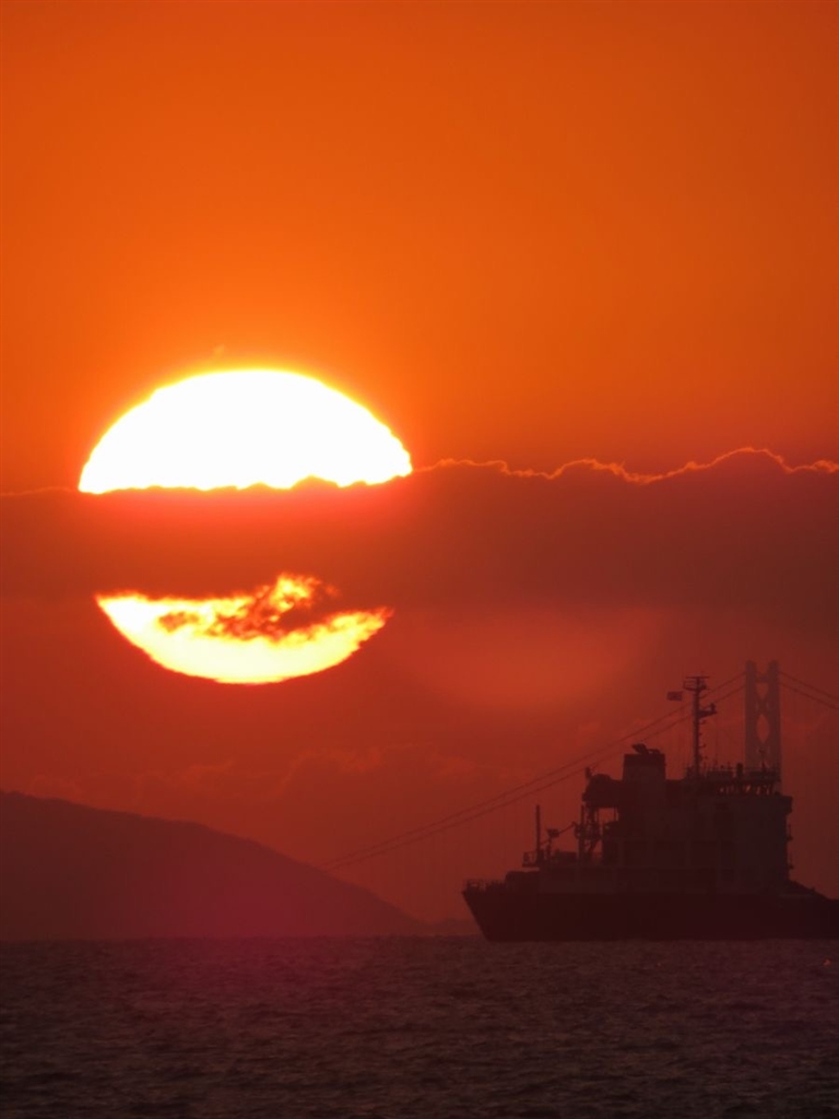 明石海峡大橋に沈む夕陽