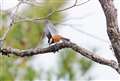 ガッカリして歩いていたら、前方の枝に落ちるようにウソが現れ、