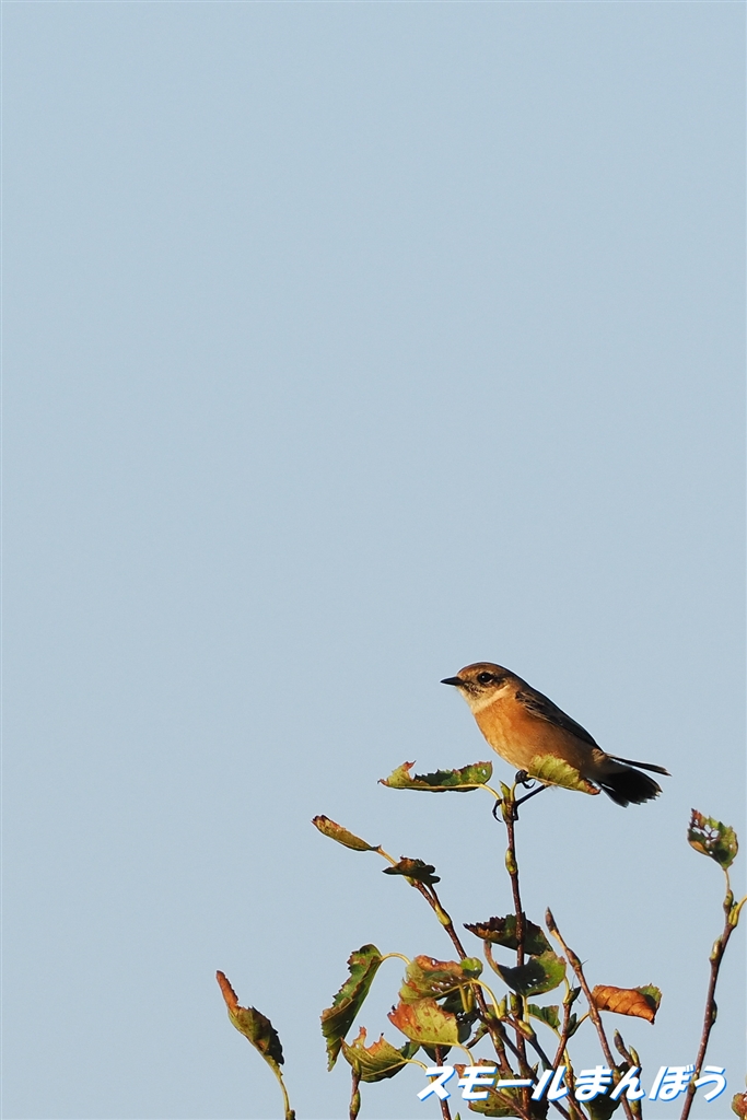 朝日を浴びて・・・の冬羽のノビタキ