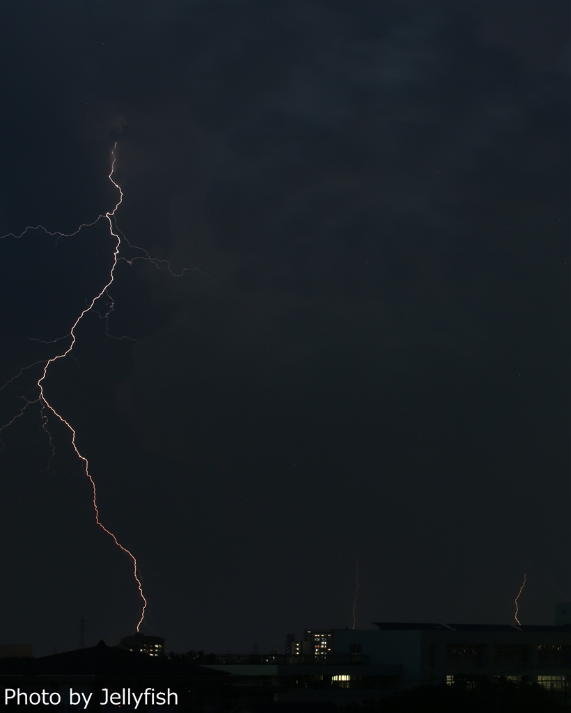 近所のイオンの駐車場では雷の写真が良く撮れる