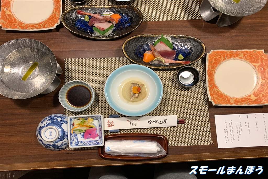宿の夕食(着席時)