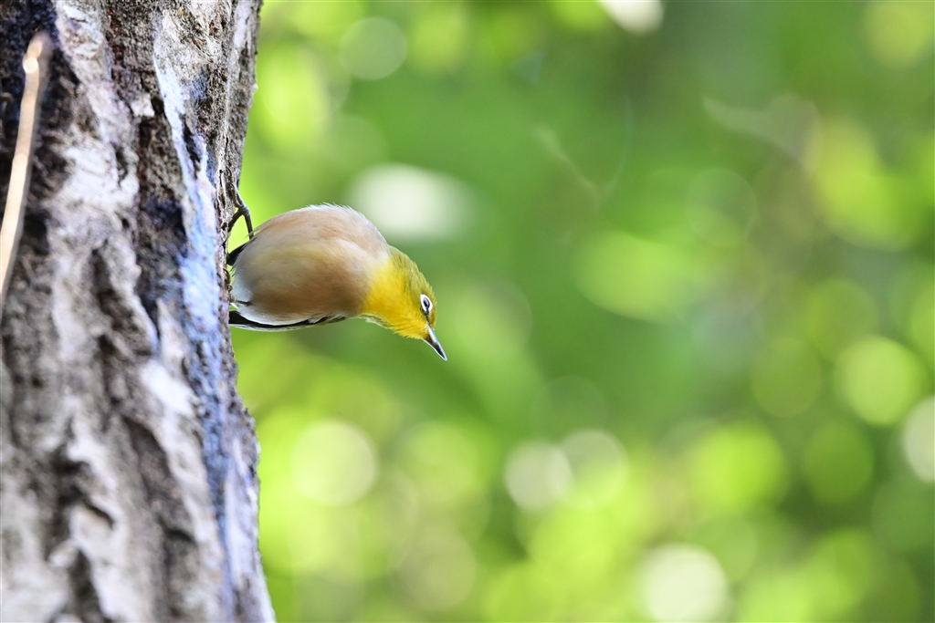 樹液を舐めるメジロ
