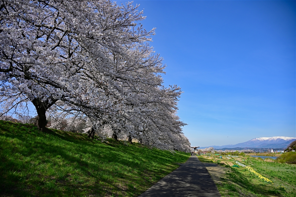 白石川堤一目千本桜 蔵王連峰もクッキリと見えました