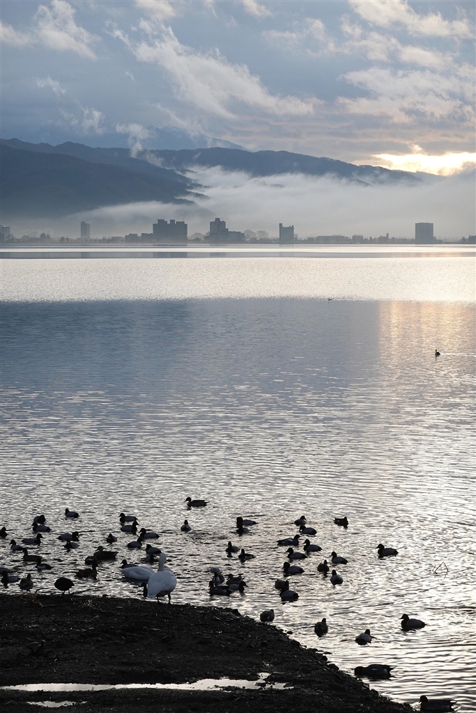 今朝の諏訪湖(100mm)