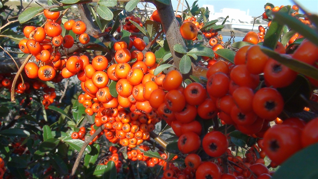 河川敷のピラカンサ