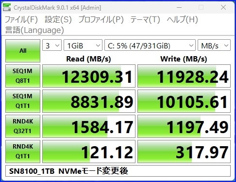 NVMe変更後