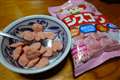 ブルーベリー餅でした、お餅専門店で買って、焼いてるところでした。