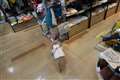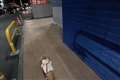 座り込んで動かない頑固な様子がコミカルで楽しいです。どうしても店内へ入りたいのでしょう。