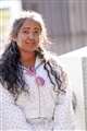あどけない表情、豪華なお帽子、可愛い小さな手、大切に抱いているウサギの相棒・・