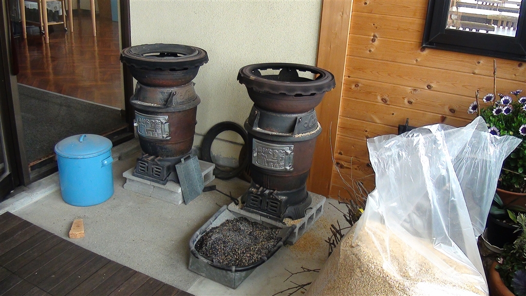 朝の食事は、此の竈で