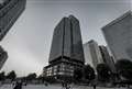暗くなりかけた時刻に3ナノ半導体のような!?高密度の建物が高コントラストに浮かび上がりました。