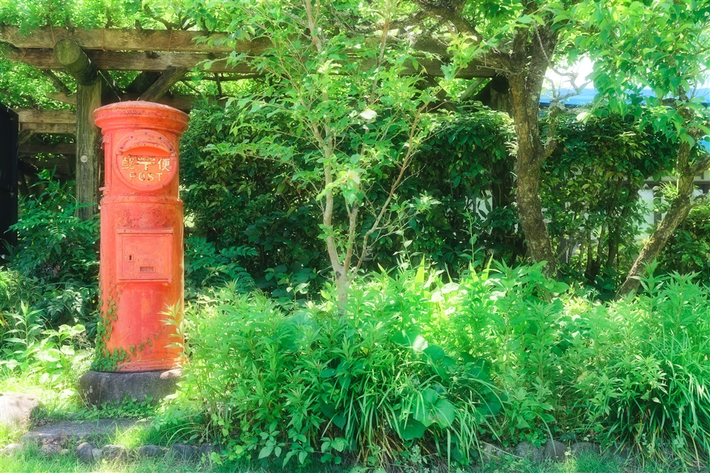 愛媛県宇和島市にある天赦園という庭園で撮った赤いポスト