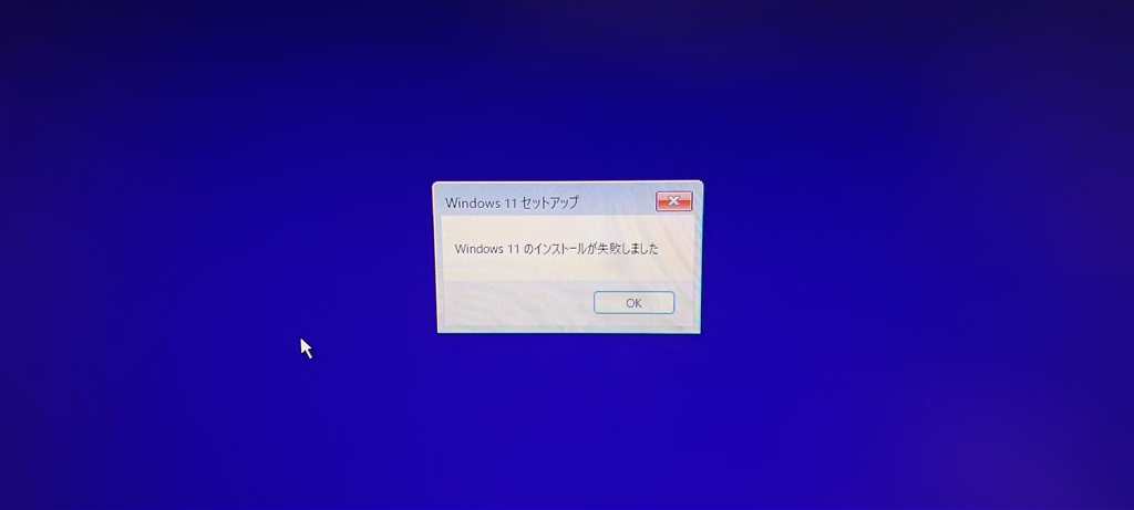 インストール中に発生したエラーで止まっている様子
