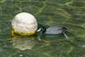 置物のように見えますが、ちゃんと生きてるそうです。汚れたガラスや背後が