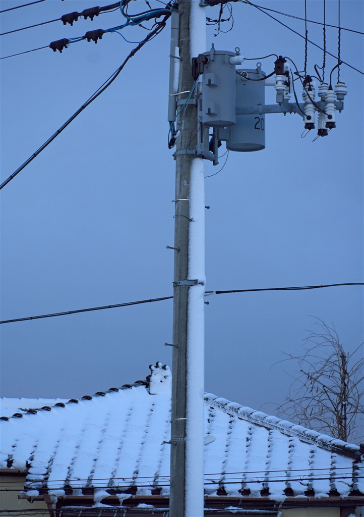 電柱は半分雪
