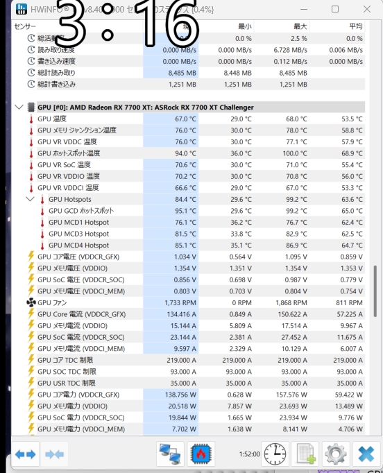 『GPU温度とホットスポット温度の最大温度を見たときに約30℃の差がある』 グラフィックボード・ビデオカードすべて ren renkjjjjさんのクチコミ掲示板画像1/1