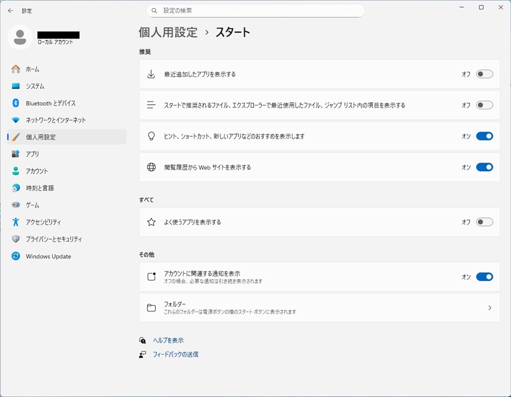 PC@-2 個人設定 → スタート