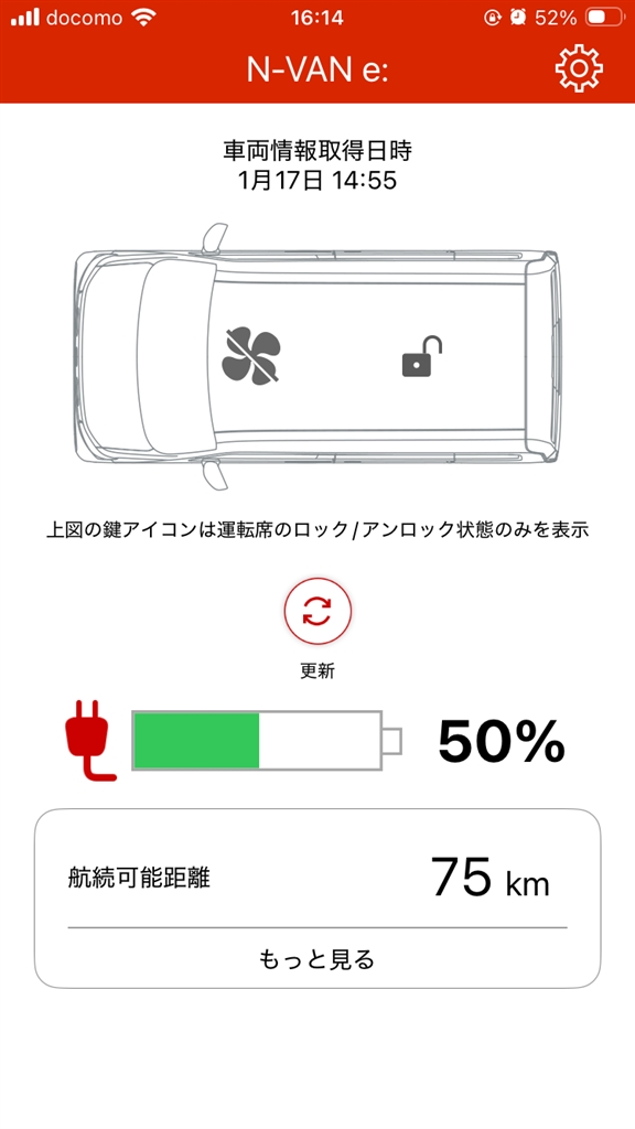 1月、SOC50%で走行可能距離75%。100%でも150kmです