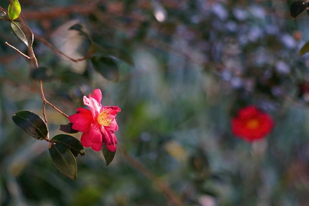 赤と黄色の際立つ色がサザンカの妖しい魅力