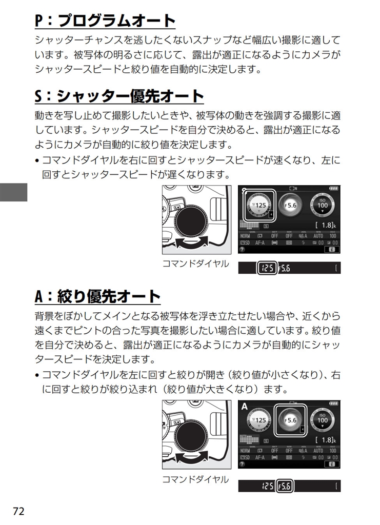 『「S モード」で【シャッター速度】を設定する D5500取説(p.72)より』 デジタル一眼カメラすべて ありがとう、世界さんのクチコミ掲示板画像2/2