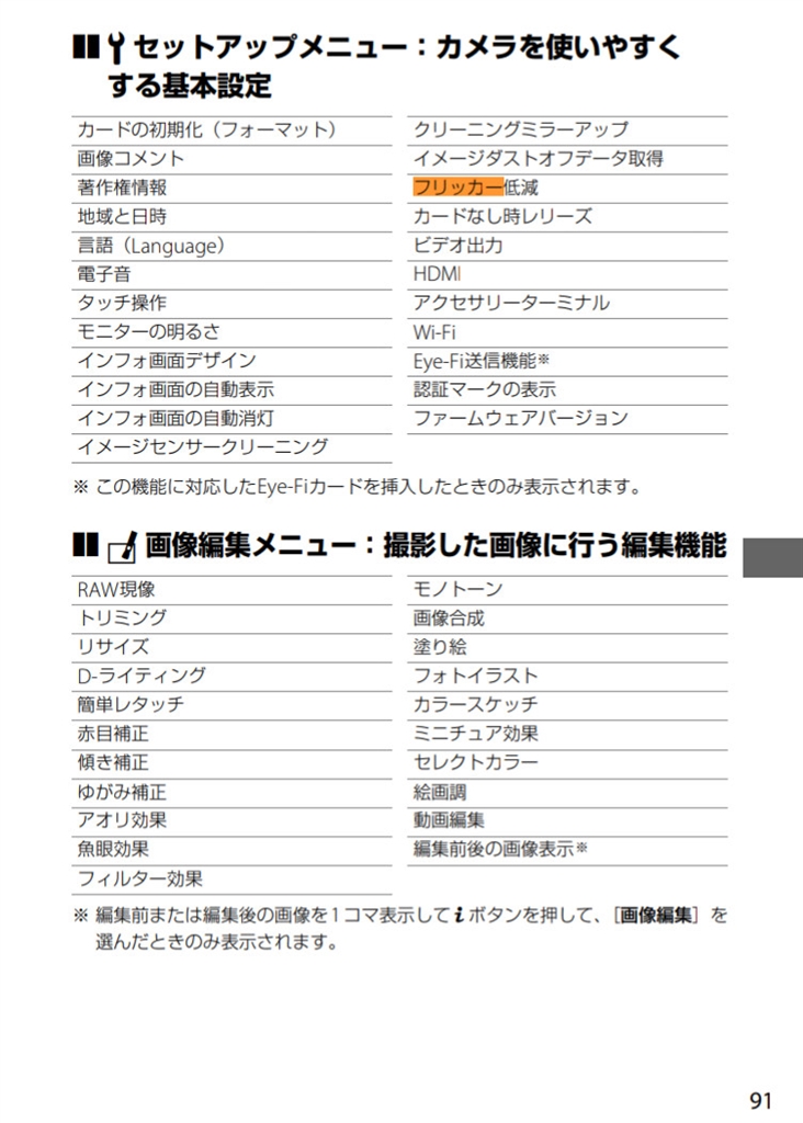 D5500「フリッカー低減」設定 取説p.91