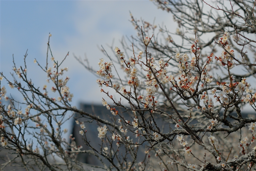 白梅も風が大敵で 折からの寒風で花が散り始めていました