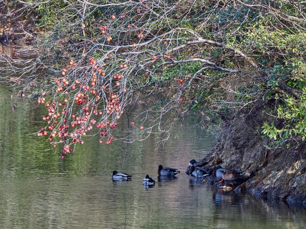 池の片隅の人影も人の視線も届きにくい場所が憩いの場所となっています