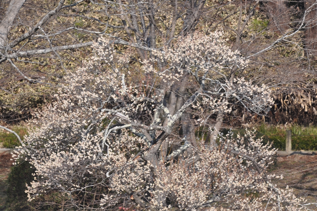 偕楽園西側入り口の1本だけ早咲きの白梅・・・残りはまだつぼみです