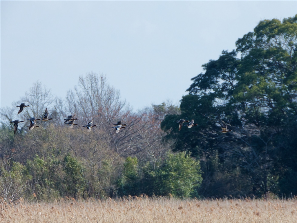 歩いていると カモが羽音を立てて