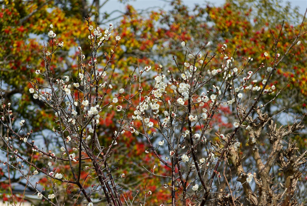 白梅がちらほら咲き始めました。そんな公園で探鳥