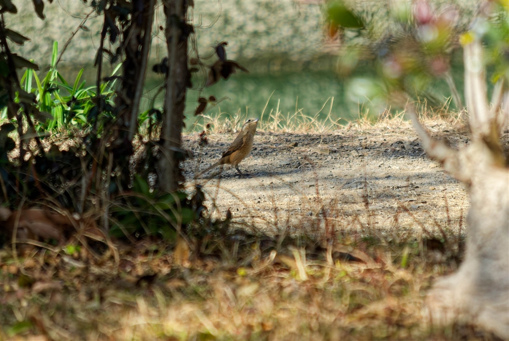 歩く人家のない路にモズが降りてきて散歩 生け垣に隠れて離れてパチリ