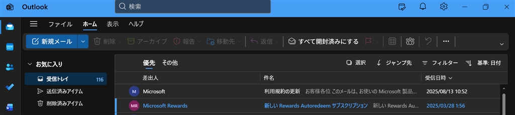 1.受信トレイを選択