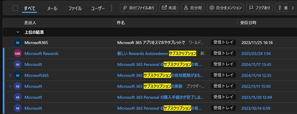 4.ちなみにメールの本文も検索してくれたみたいです