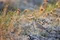 なんと言ってもトサカです。草に霜が付いていて、まだ朝は寒いのですね。