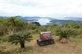海岸までは広々とした公園となっており、海と陸との境界線で防護壁のようにアダン樹(タコノキ科)が続いていました。