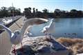 静かな水面ですね。大きな野鳥さんたちが水中を凝視しています・・