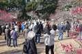注目していた枝垂れ八重紅梅が満開となりましたので愛でに行きました。同じく枝垂れの八重白梅も盛りを迎えようとしていました。
