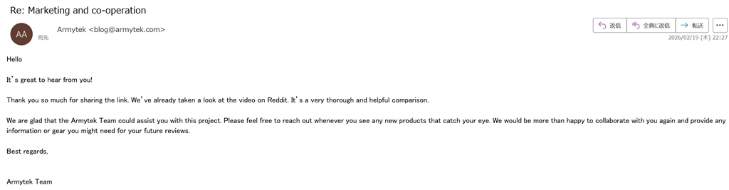 短く言うと感謝のメールでした
