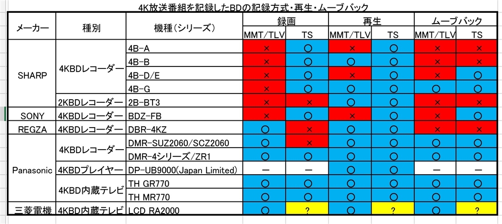 『表1』 ブルーレイ・DVDレコーダーすべて はるちゃん2000さんのクチコミ掲示板画像1/1
