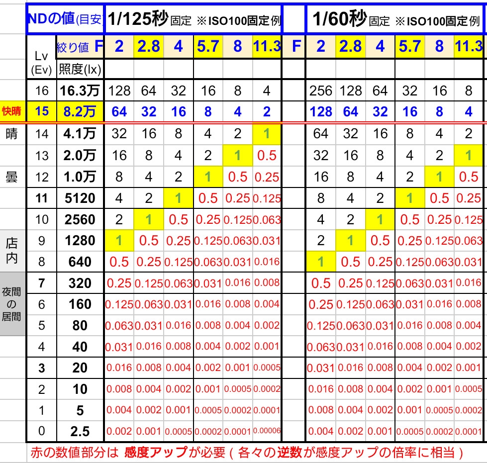 【NDフィルターのNDの値の例】