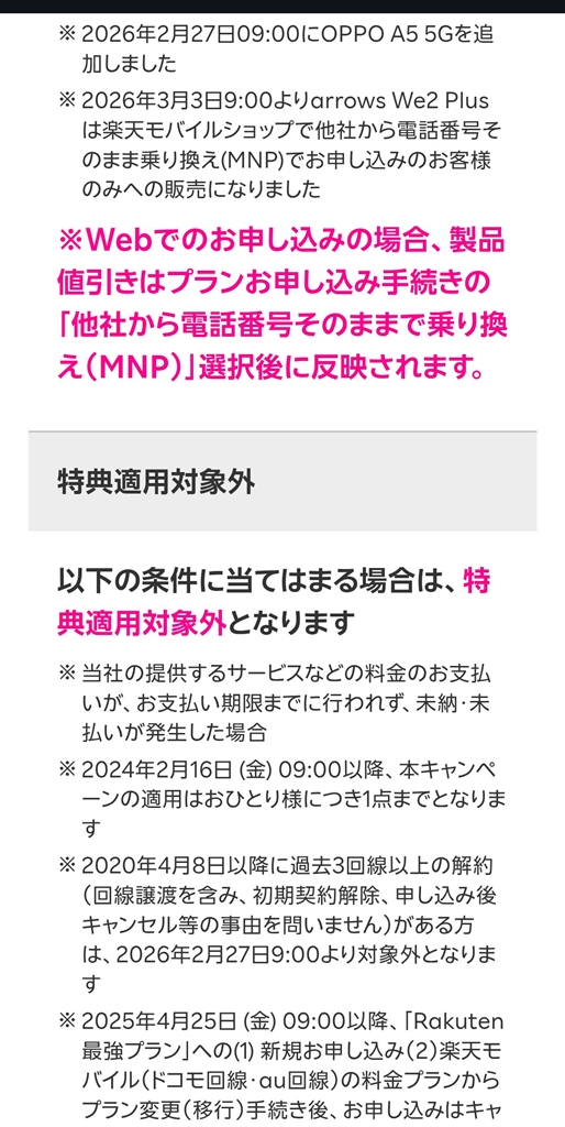 楽天端末:3回線以上解約者対象外