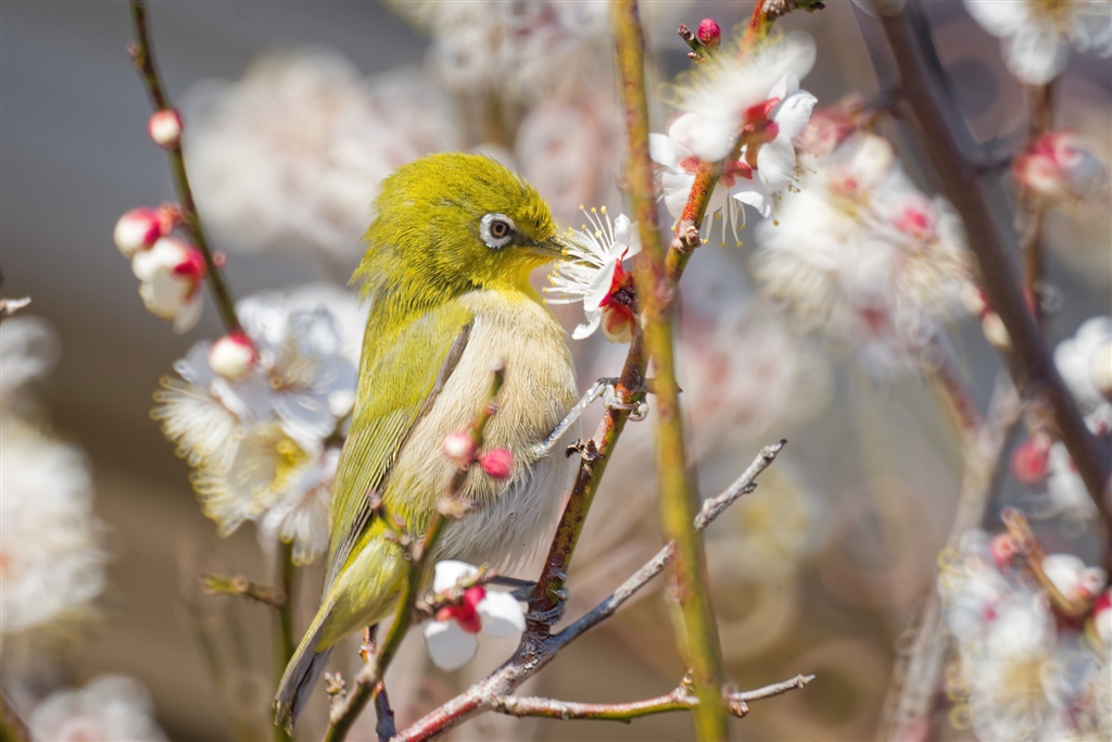 ウメジロ REFLEX 500mm-1 留まっているメジロはまだいいですが