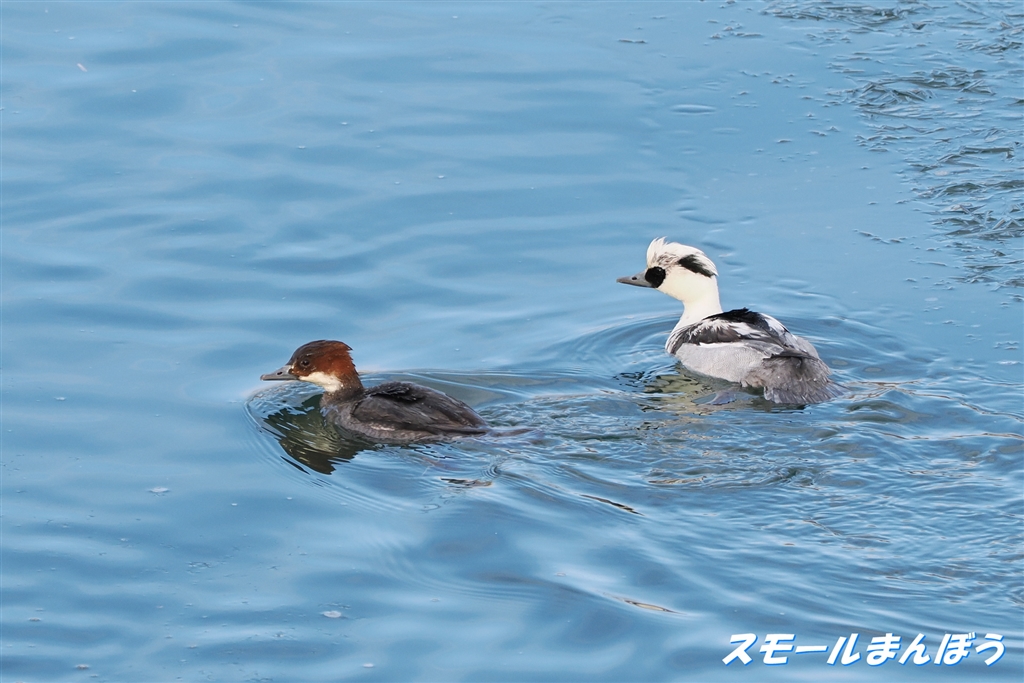 ミコアイサのオス(右)とメス(左)