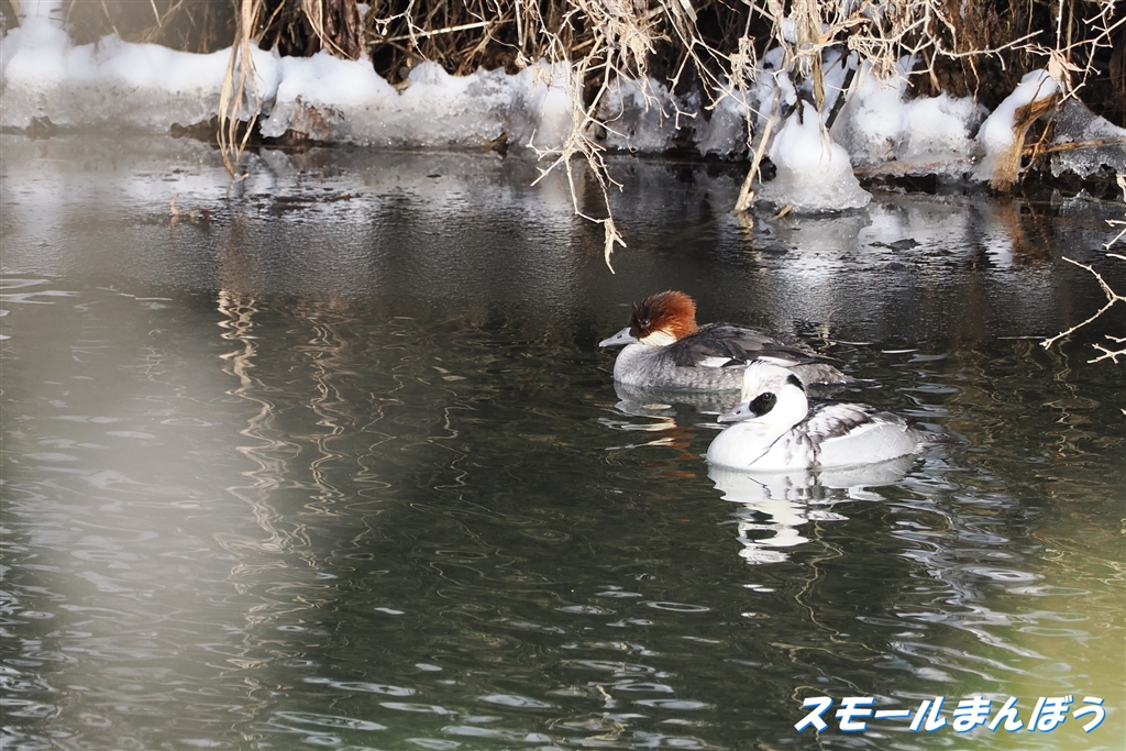 ミコアイサが仲良く泳ぐ