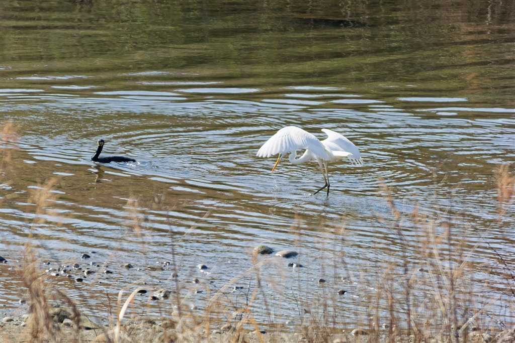 白と黒の水鳥が遠くに居ました。