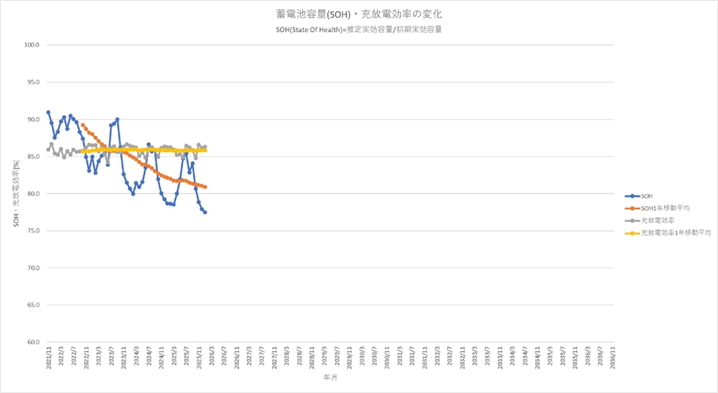 蓄電池容量と充放電効率の変化
