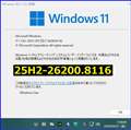 Windows 11 Version 25H2 (OS Build 26200.8116)となる