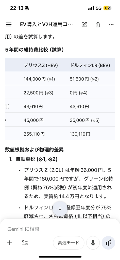 『HVてEV5年間のトータルコスト比較 ガソリン税無しでも38万』 自動車(本体) 卒fitさんのクチコミ掲示板画像1/1