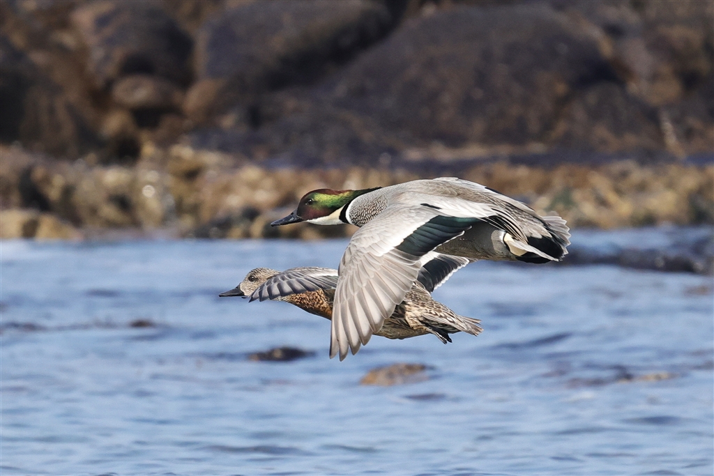 ヨシガモのペア(手前が♂)